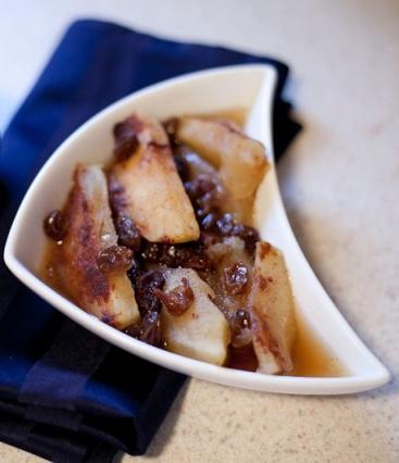 Serves: 4-6 Ingredients: 6 Large tart apples, cored, sliced and peeled (peel on is okay too) 1 cup golden raisins 1cup granulated sugar ¼ cup light brown sugar 1 tablespoon cinnamon 1/8 teaspoon nutmeg 3 tablespoons cornstarch 4 tablespoons butter, sliced 2 tablespoons Olive ~Me & Co’s Cinnamon Pear Balsamic Directions: Put all ingredients…