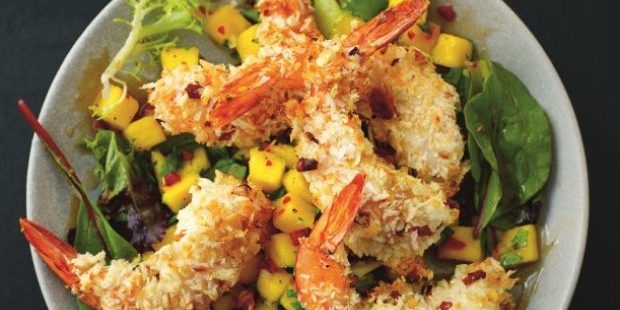 - Once cooked, the shrimp should have turned from bluish green to pink, be cooked through and the coconut crumbs crisp and lightly golden. Remove them from the oven and you are ready to serve.
