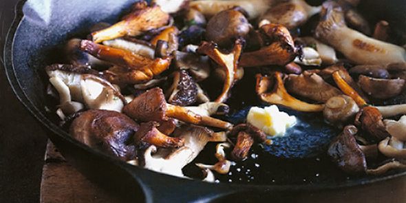 - 8 cups sliced wild mushrooms, such as chanterelle, shiitake, oyster, trumpet, or morel, preferably just a single variety and not a mix