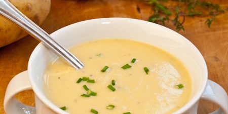 - Cook until the vegetables are tender 20- 25 minutes. In a blender, fill blender 1/2 way, puree the soup. You will have to do this in batches and please ensure the lid is vented. Garnish with chives and enjoy! You can even drizzle a little of the bacon olive oil over top as you serve!