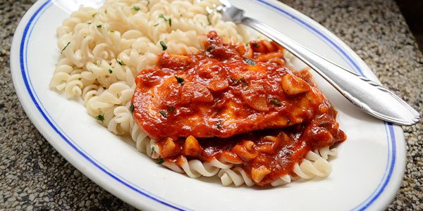 - Place chicken back into the sauce. Add seasoning to taste. Bring to a boil and serve over rice, quinoa or pasta.