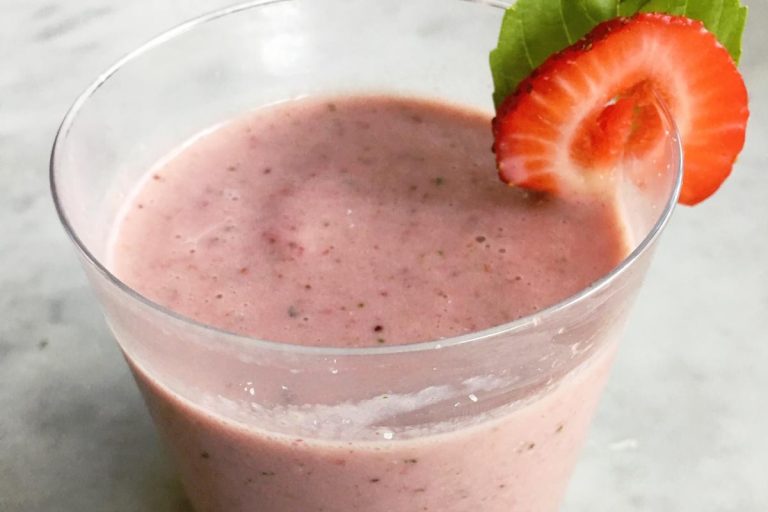 Makes One Smoothie Ingredients: 1 cup of frozen whole or sliced strawberries ¾ cup of ice cold water 1 Tbsp of Olive~Me & Co’s 18…