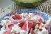 Ingredients: 3- 3.5 cups Watermelon cut into 1 inch cubes 1-1/2 cups feta cheese cut into 1 inch cubes 4 paper thin slices of red onion,…