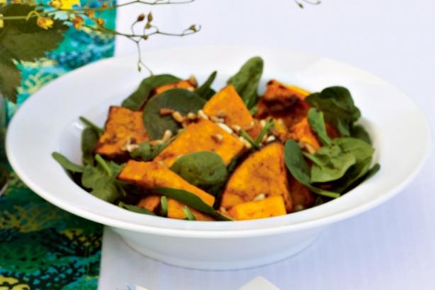 Ingredients: 1.75kg butternut pumpkin, deseeded, cut into 2cm-thick pieces olive oil 1/2 cup pine nuts 200g baby spinach Honey and balsamic dressing: 1/4 cup honey…