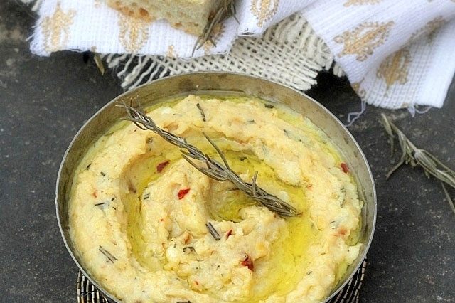 Ingredients: 1/4 cup Olive~Me & Co’s Rosemary EVOO, divided into two equal parts 2 cloves garlic, peeled and minced 2 cans (15 oz. each) white…