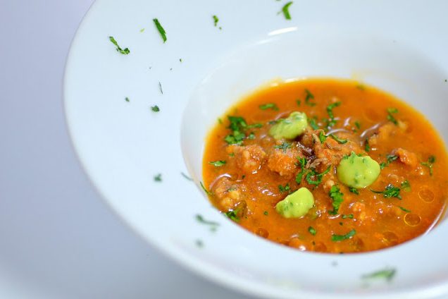 Ingredients: 3 lbs tomatoes 2 links of chorizo sausage 2 cups water 1 garlic bulb 2 teaspoon Olive~Me & Co.’s Roasted Chile Olive Oil…