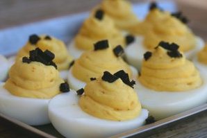 Ingredients: 6 eggs ¾ cup mayonnaise 1 tbsp. Olive~Me & Co’s White Truffle Olive Oil Pinch cayenne pepper 2 tbsps. fine chopped black truffle…