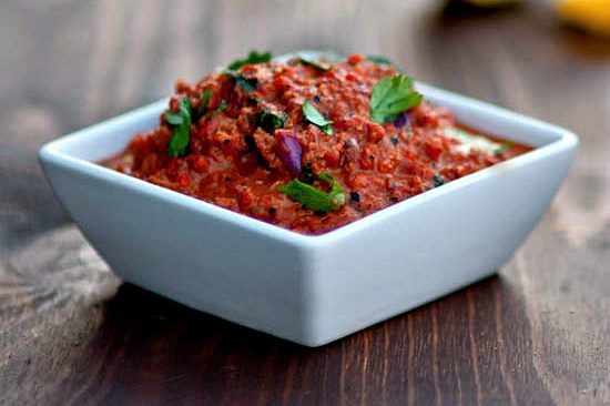 Ingredients 3 roasted red bell peppers 1/2 cup walnuts, chopped 1/4 cup breadcrumbs 2 garlic cloves, minced 1 tablespoon Olive~Me & Co.’s Pomegranate or…