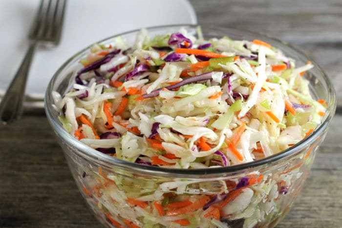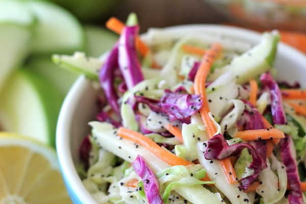 Ingredients: 2 cups green cabbage, shredded 1 ½ cups red cabbage, shredded 1/2 cup carrot, shredded 1 Granny Smith apple, julienned 2 tablespoons mayonnaise 3…
